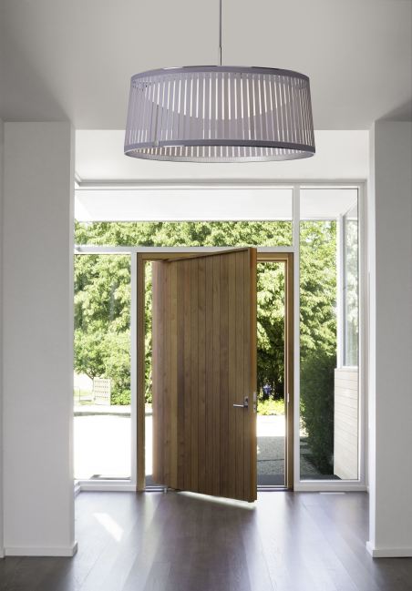 Al crear las luminarias Solis, la diseñadora Carmine Deganello se propuso involucrarse con la luz en su forma más arquetípica: como rayos de sol. Las piezas que resultaron de esa maravillosa idea son una cautivadora mezcla de luz y sombras, que al proyectarse son como rayos brillantes y recrean patrones que irradian mucha belleza en cualquier espacio. Solis Drum colgante es la más nueva incorporación a a esta elegante familia que al igual que las demás lámparas de la familia da ese efecto de sensación de ingravidez y redefine el entorno invitando a un nuevo tipo de relación con el objeto-fuente de luz. Solis Drum está hecha de tela de poliéster cortada perfectamente –con láser– y combinada con un ensamblaje superior e inferior de soportes de aluminio que permite que la pantalla cuelgue bajo tensión. Igualmente, emplea un impresionante difusor de domo LED que se extiende a lo largo de todo el diámetro del anillo (soporte) superior, irradiando luz hacia abajo y hacia los lados para proyectar patrones brillantes y cálidos en los espacios que le rodeas. Su versatilidad en la forma le permite ir maravillosamente ya sea de manera individual o en grupo.