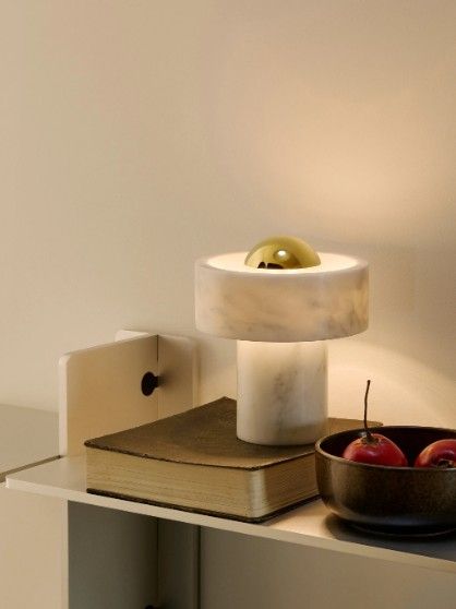 Stone se inspira en la materialidad del mismo mármol utilizado para construir el Taj Mahal. Esta dura piedra semipreciosa tiene una huella única: táctil, pesada y duradera. La iluminación de piedra presenta un sólido anillo exterior de mármol que parece flotar alrededor de la fuente de luz para generar un suave efecto de halo.