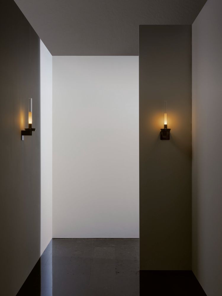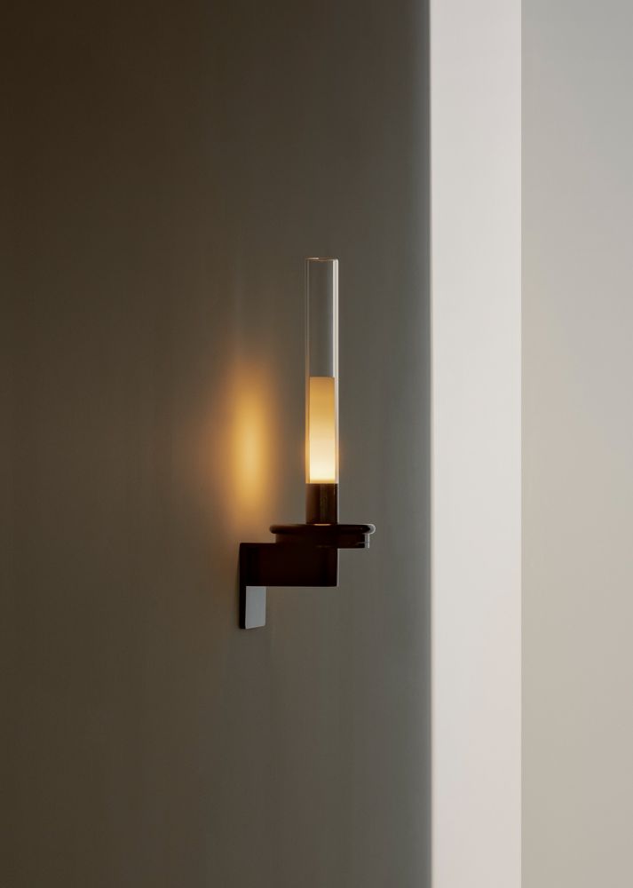 Este aplique cuenta con una base circular metálica de acabado negro brillante y una pantalla cilíndrica de vidrio que permite difundir una luz cálida. Manteniendo la inspiración de sus diseñadores en el candil tradicional, el aplique Sylvestrina proporciona una luz ambiental adecuada tanto para lugares amplios y pasillos, como para aquelos rincones más interiores.