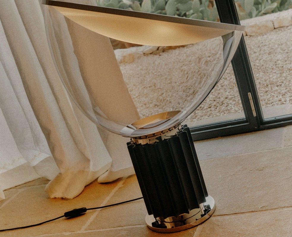 La Taccia es una icónica lámpara de mesa concebida para ofrecer una iluminación indirecta y reflejada con una fuerte presencia escultórica. Su diseño combina un reflector de aluminio pintado en blanco, brillante en el exterior y mate en el interio. El cuerpo de aluminio extruido con acabado negro mate y la base en metal niquelado aportan solidez y elegancia. Diseñada para interiores secos y con una estética atemporal inspirada en los focos teatrales, la Taccia PMMA es una pieza de diseño italiano que equilibra innovación técnica, funcionalidad y carácter decorativo, ideal para espacios residenciales o profesionales que buscan un objeto emblemático de la iluminación contemporánea.