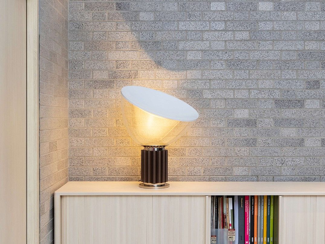 La Taccia es una icónica lámpara de mesa concebida para ofrecer una iluminación indirecta y reflejada con una fuerte presencia escultórica. Su diseño combina un reflector de aluminio pintado en blanco, brillante en el exterior y mate en el interio. El cuerpo de aluminio extruido con acabado negro mate y la base en metal niquelado aportan solidez y elegancia. Diseñada para interiores secos y con una estética atemporal inspirada en los focos teatrales, la Taccia PMMA es una pieza de diseño italiano que equilibra innovación técnica, funcionalidad y carácter decorativo, ideal para espacios residenciales o profesionales que buscan un objeto emblemático de la iluminación contemporánea.