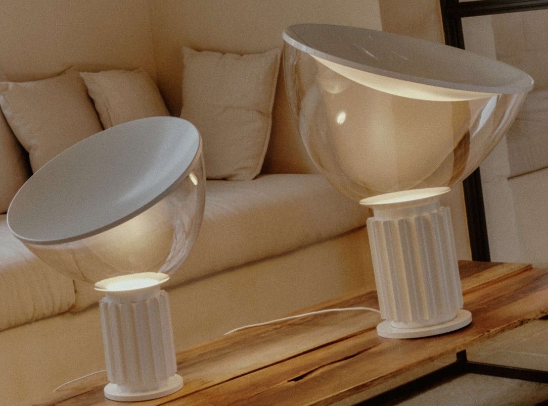La Taccia es una icónica lámpara de mesa concebida para ofrecer una iluminación indirecta y reflejada con una fuerte presencia escultórica. Su diseño combina un reflector de aluminio pintado en blanco, brillante en el exterior y mate en el interio. El cuerpo de aluminio extruido con acabado negro mate y la base en metal niquelado aportan solidez y elegancia. Diseñada para interiores secos y con una estética atemporal inspirada en los focos teatrales, la Taccia es una pieza de diseño italiano que equilibra innovación técnica, funcionalidad y carácter decorativo, ideal para espacios residenciales o profesionales que buscan un objeto emblemático de la iluminación contemporánea.