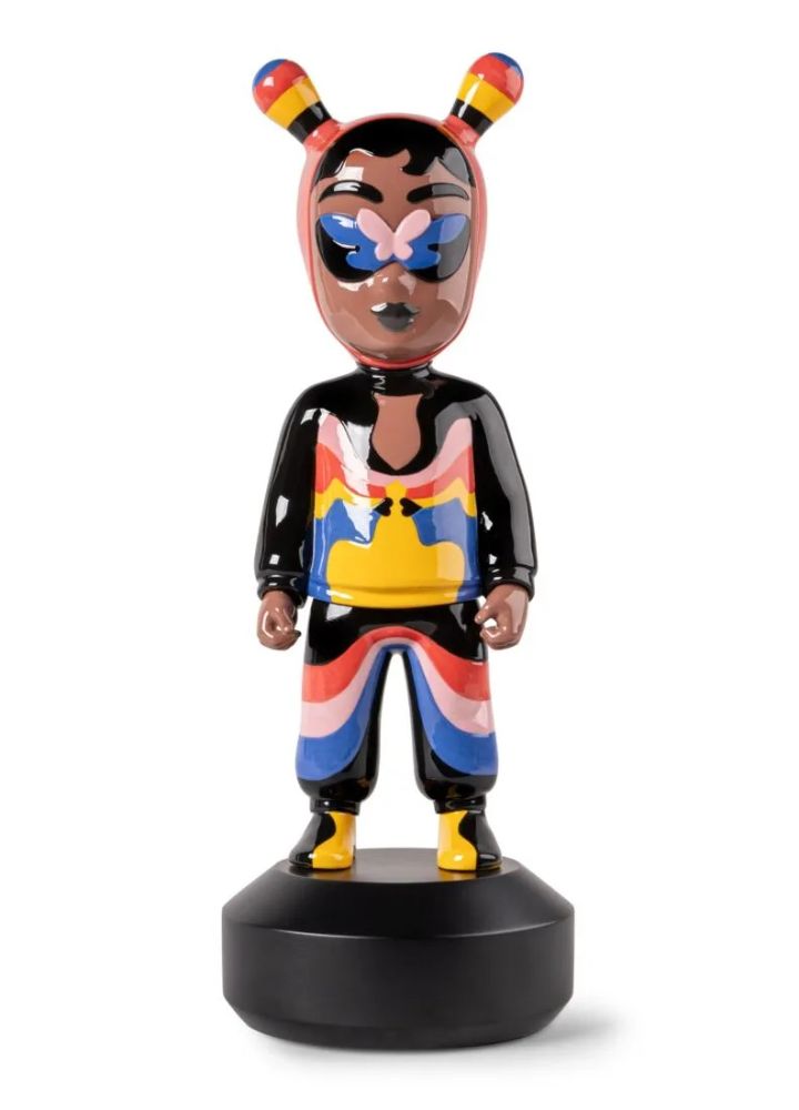 Jade Purple Brown es una de las prestigiosas diseñadoras que aportan su visión al icónico The Guest. Desde su creación por Jaime Hayon, The Guest se ha convertido en el personaje de las mil caras, interpretado por los creativos internacionales más contemporáneos. Purple Brown, talentosa diseñadora establecida en Nueva York, se une a esta gran familia con los primeros The Guest femeninos. Su obra, caracterizada por un imaginario que sitúa a las mujeres en el centro con una estética pop, se manifiesta claramente en estas propuestas.En esta creación, llena de color y fuerza, Purple habla de empoderamiento y toma de conciencia. Una pieza que aspira a ser una forma de activismo, desafiando los estereotipos y aprovechando el poder del diseño para dar voz a las mujeres. Un canto a la feminidad en forma de serie limitada de 300 unidades.