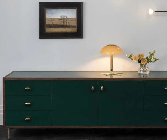 Una base en forma de estrella de latón pulido sin lacar sostiene con delicadeza un tallo de roble blanco y una pantalla de vidrio italiano. Tres elementos únicos se unen en una composición armoniosa que celebra la unión entre lo clásico y lo contemporáneo, entre las estrellas y los hongos.