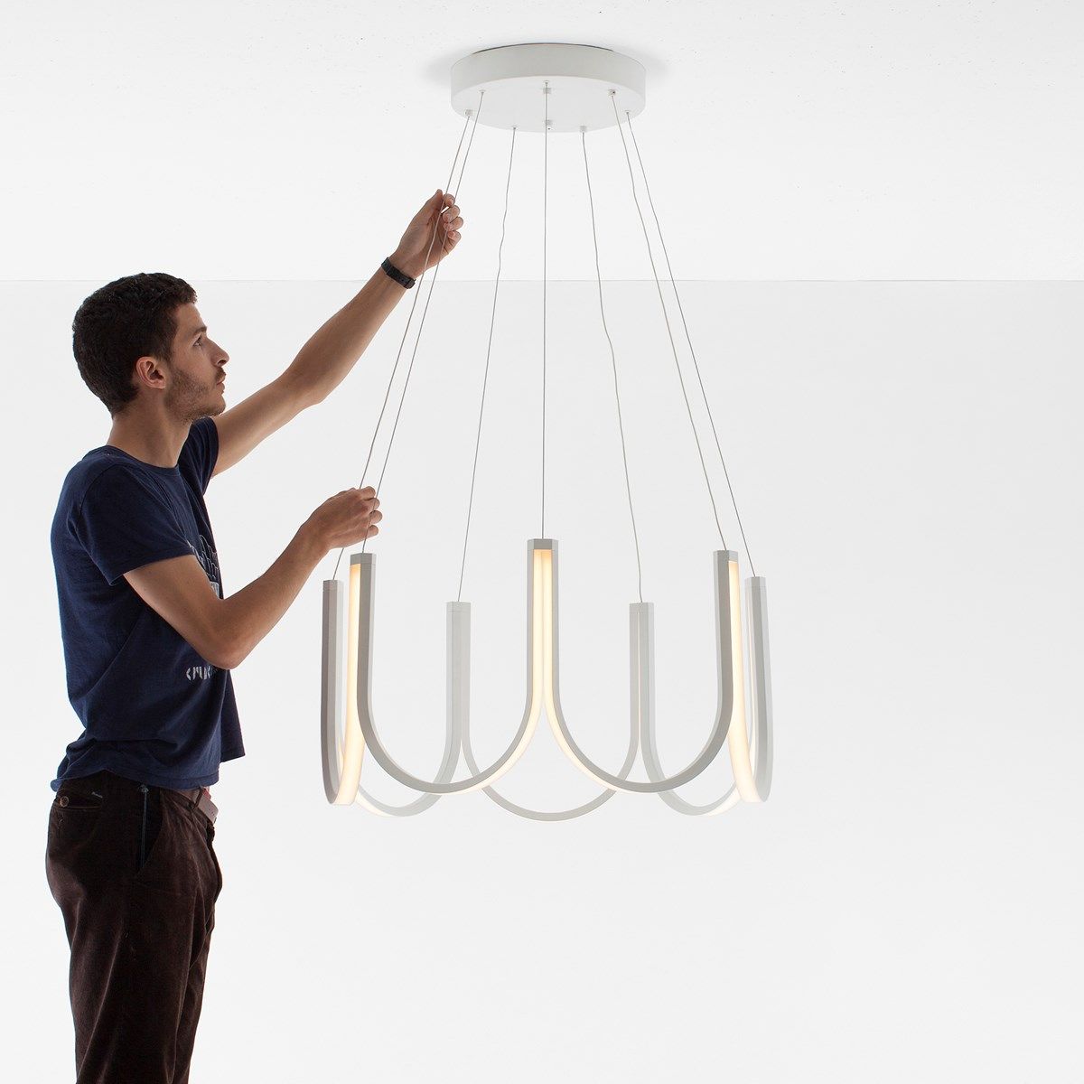 Una familia de luminarias que combina a la perfección el mundo de Arpel Lighting con el enfoque gráfico e icónico del diseñador belga Sylvain Willenz. La creación de esta colección, con su estilo atemporal, se basa en un módulo único en forma de U fabricado con la mayor precisión. Los LED, colocados en la periferia exterior de esta forma de U, emiten una luz suave, cálida y potente cuya intensidad se puede ajustar fácilmente por control remoto para adaptarse mejor a la atmósfera deseada.