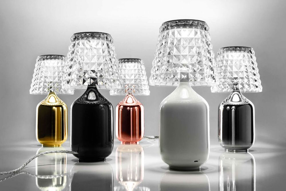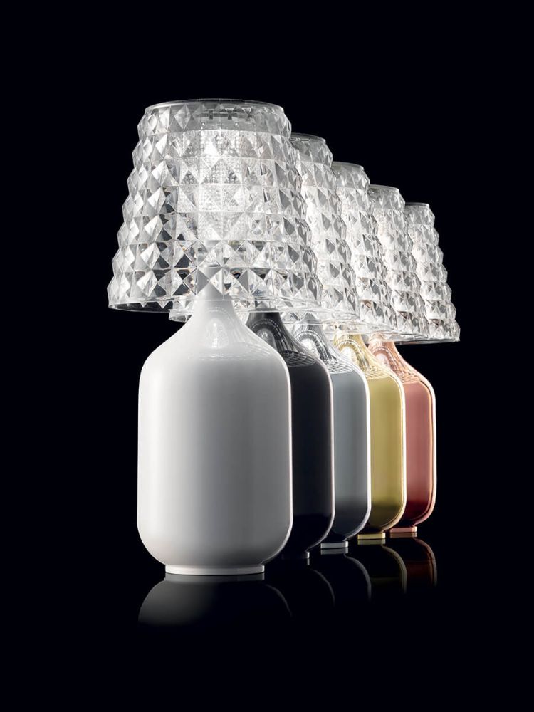 Valentina es una familia de lámparas caracterizadas por un transparente difusor de pantalla de metacrilato adornado con prismáticos especiales Mano de obra diseñada para amplificar la luz. Disponible en un versión de suspensión, pared y mesa, las lámparas Valentina son perfectas para infundir espacios con una atmósfera suave y romántica.