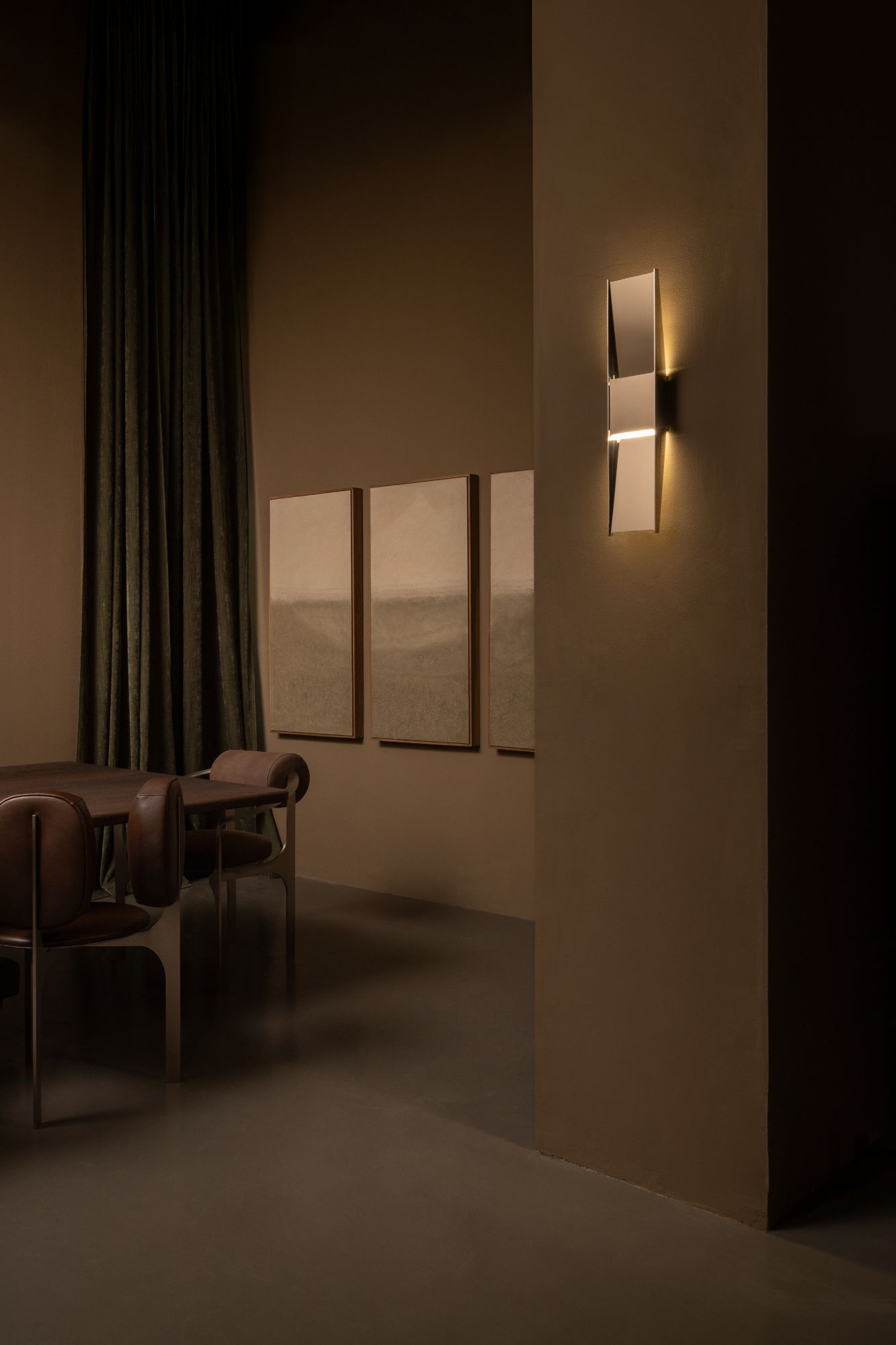En reverencia a los grandes monumentos brutalistas, Vector revela ligeras aberturas en los planos arquitectónicos mientras juega con vacíos y volúmenes. Se puede fijar una sola sección rectilínea a la pared en una configuración vertical u horizontal, exponiendo su forma honesta y reduccionista.