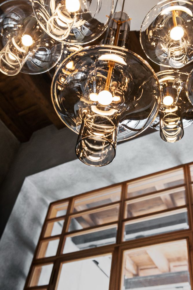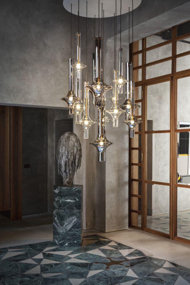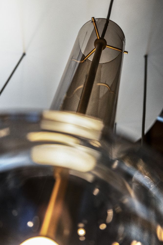 La maravilla resultante de la combinación de varias lámparas Wonder de diferentes dimensiones, acabados y tamaños, tiene la misma belleza diáfana que el vidrio de borosilicato que compone cada tallo, en acabado transparente o ahumado.